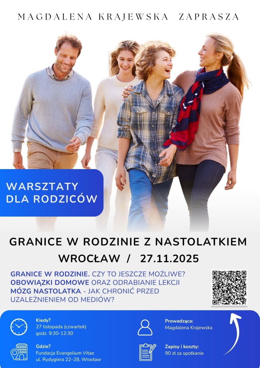 Serdecznie zapraszamy na warsztaty dedykowane rodzicom starszych dzieci i nastolatków. Te trzy spotkania pomogą Ci odnaleźć się w nieustannie zmieniającym się świecie Twojego nastolatka. Pomogą wrócić do bliskiej relacji i odtworzyć współpracę opartą na zaufaniu.